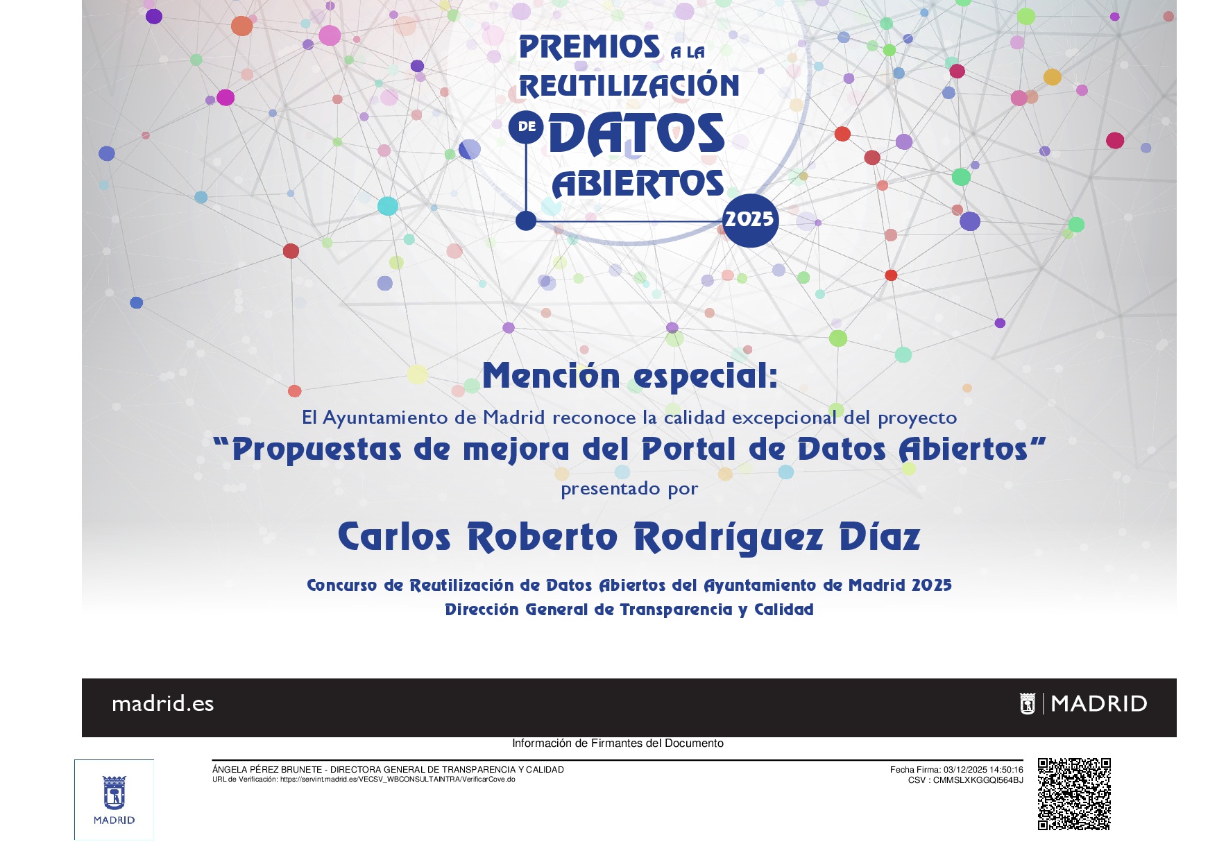 Descripción: Proyecto presentado en el Concurso de Datos Abiertos del Ayuntamiento de Madrid 2025, en el que obtuvo una mención honorífica.